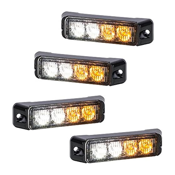 4pc LAMPHUS Nanoflare NFLH04 LED Strobe Grille Flashing Lights [SAE Class 1] [72 Modes] [4 Watt] [Super Slim] [Weatherproof] Warning Light for Police & Firefighter Emergency Vehicles - Amber / White