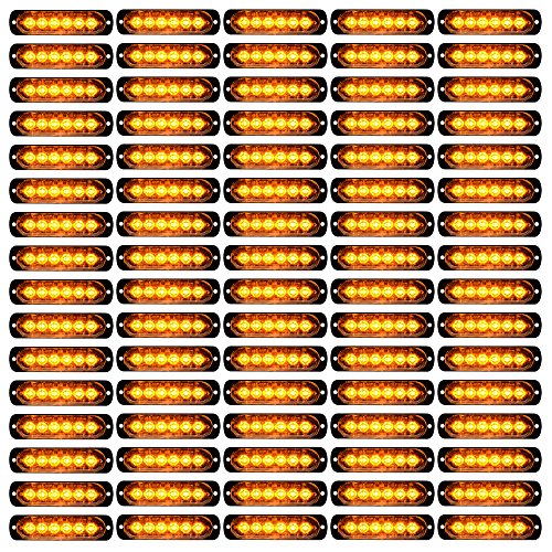 80PCS Amber Yellow Universal Super Thin Ultra Slim 6-LED Car Truck Warning Caution Emergency Construction Flashing Strobe Light Bar (In Bulk)