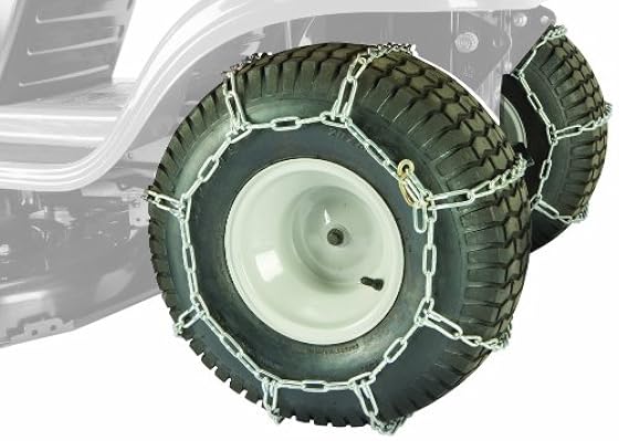 Provides additional traction in snowy and icy conditions. Contains one set of two tire chains. Fits 18" x 8.5" x 8" rear lawn tractor tires
