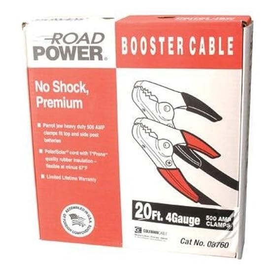 Automotive > Replacement Parts > Batteries & Accessories > Battery Accessories > Battery Jumper Cables > Coleman Cable 08766 Heavy-Duty Truck and Auto Battery Booster Cables with Parrot Jaw Clamps, 4-Gauge, 16-Foot