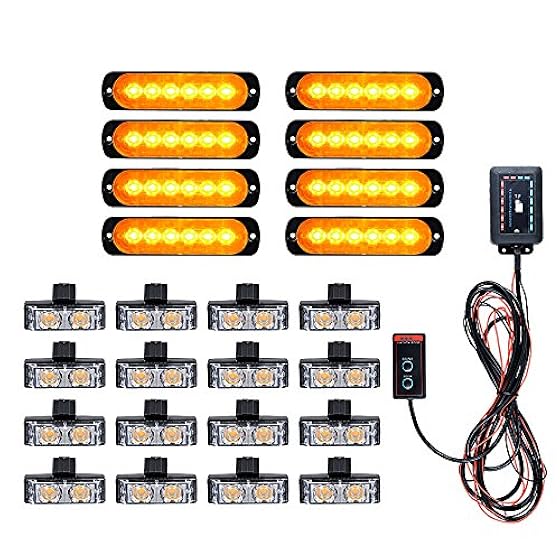 Anti-collision, anti-dust and splash-proof. Low power consumption, quick instant start-up time. No pollution, no noise, no electronic interference and more efficient. 2-LED Strobe Lights: 10 Different Modes of Strobe / Flashing / Traffic Advisor with just One Press on the button. Package included: 8X Ultra Slim 6-LED Amber Strobe Lights + 8X Protection Pads + 16X 2-LED Amber Strobe Lights with Clips + 1X Control Box with On/Off + Pattern + Mode Indicate Switch. Compatible with all Car SUV Truck Trailer Van Bus with DC 12V power source. Ultra Slim 6-LED Strobe Lights: 16 different flashing patterns, Last pattern memory recall