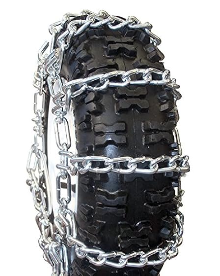 For snow blowers and lawn and garden tractors with DEEP LUG tires. Twist Link ladder design with 2 Link spacing and a larger wire diameter cross chain for deep lug tires. 2 link chains have cross chains spaced 2 links apart for double the traction.. Tire Chain is 27.8"L x 9.12"W. Fits Tire Sizes: 13x5.00-6, 14x4.00-6. Packed one pair (for 2 tires) per cardboard carton. Spring Tire Chain Adjusters are recommended and sold separately. Item 0271I for rims less than 10" and item 0270I for rims 10" and larger.