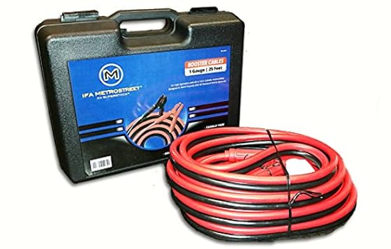 This listing is for one (1) set of Metrostreet 1 gauge 25ft. booster cables (Made in China). These cables come in a heavy-duty plastic carrying case. The cables features are the following: 100% Copper Jaws Professional Grade Tangle Free 800 Amp Capable Extra Flexible For Easy Use Heavy Duty Color Coded Clamps High/Low Temperature Construction Durable Carrying Case