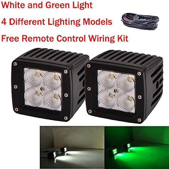 Omotor Pair 24w Flood Beam Cree LED Work Light 2400lm 3.2 Inch RGB Strobe Remove Control Free Wiring Kit (Model Two, White and Green) 4x4 Jeep Truck Suv ATV Lighting …