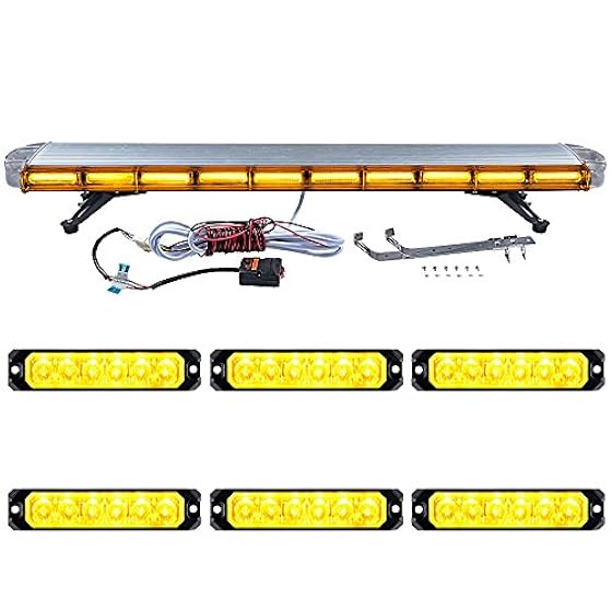 Set AMBER 47 inch 22 COB LED Strobe Light Bar + 6pcs Brighter 6-LED SYNC Flashing Hazard Lamp Car Truck Tow Plow Emergency Warning Construction Security