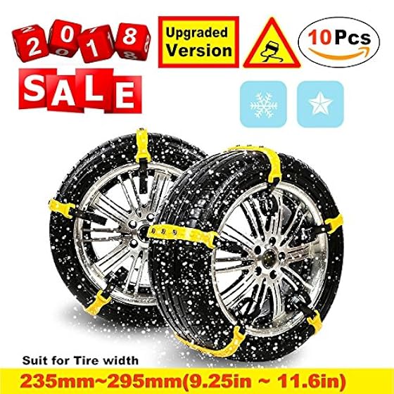 【NEW 2018 VERSION 】Car Snow Chains Anti Slip Tire Chains Adjustable Anti-Skid Chains Emergency Thickening Car Tire Snow Chains Fits for Most Car/SUV/Truck-Set of 10