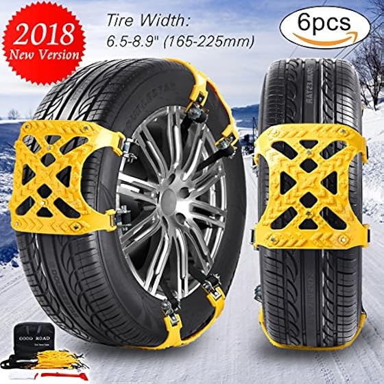 LOW TEMPERATURE RESISTANCE- Our slush chains resistant to low temperature of minus 50 degrees celsius, which is must have for driving in winter.. THOUGHTFUL DESIGN- The car safety chains comes widener tyre chain with screw type icebreaker steel nails design , increase resistance and good strong grip. Fixed fastener, with advanced steel, durable, safer and stronger. The back of icebreaker is smooth and no convex, which can protect tire. What's more, there has designed anti-slip granules on surface of tire chains, more durable and anti-skip. Addition, adopt elastomer between rubber and plastic, resistance to abrasion, anti tear,. EXCELLENT ANTISKID PROPERTY- The tire chain comes thickened anti-skid chain with icebreaker steel nails, provide a good strong grip for snow day, mountain climbing and mud.. SUPREME QUALITY- The tire chain is made of high-tech mixed material (TPU) , like beef tendons, with metal clips, no lifting jack or remove tyres needed while using.. WEAR-RESISTING AND ANTI-TEAR- Tire anti-slip chains is made from high-tech mixed flexible material (TPU) , resistance to abrasion, rip stop, excellent buffer and shock-absorbing function