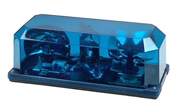 The two H1/55-watt halogen bulbs, included and installed, can be seen in bright day light. The replaceable lens is constructed of strong Polycarbonate. Built with a diagonal mirror between the warning lights for more visibility. Blue lens, Permanent mount. A true 360 degree warning light built with two gear-driven rotating lights that flash 75 FPM