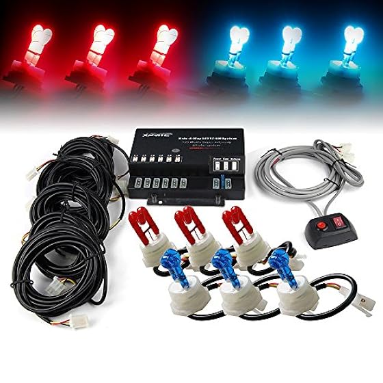 Selectable flash pattern with a press of a button. Brighter and more effective than standard LED strobe lights. Mounts onto any 1. Wattage of each bulb: 20W. Visible even during daylight conditions. Xprite 120W 6 Red & Blue HID Bulbs Hide-A-Way Emergency Hazard Warning Strobe Lights ( Notice : Xtreme Work is only authorized seller ). Package Includes: 6 x HID bulbs, 6 x extension cable, 1 x power supply, 1 x toggle switch