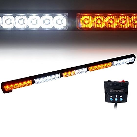Newest version 30W high intensity water proof ( IP 67 ) strobe light bar. Brighter and more effective than standard LED strobe lights, it is even visable during the daytime conditions. Can be seen up to 1/2 mile !. Dimensions: 31.5" ( width ) x 2.5" ( Height ) / Cord length: Over 7 Feet to the power switch and mode selector. 16 Different modes/patterns of strobing/flashing & On/Off with just a press of a button (Left, Right, and Center Out). "Stay On" & " Traffic Advisor" Function ! Last pattern memory recall !. Universal for all vehicle with a 12V / 24V power source. It can be used for exterior and interior !. Includes: 1 x Xprite 31.5" 30 LED High Intensity White & Amber / Yellow 16 Modes Traffic Advisor Emergency Warning Vehicle Weather Proof Strobe Light Bar Kit