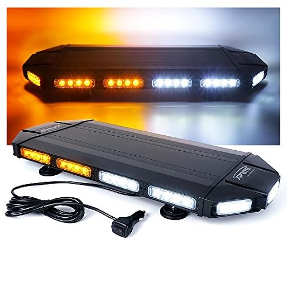 ★ STROBE PATTERNS: You can choose from 15 different strobe patterns. Patterns include Rotating, Flashing, Alternating Left to Right, Right to Left, Traffic Advisor, etc. Also has a Memory function to recall the last pattern used.. ★ FEATURES: The 27" emergency warning led strobe light bar is constructed with a sleek, low profile stealth design in mind. Fully weatherproof with completely sealed off and encapsulated lightheads. Professional design for police officers,fire,emts,construction workers and more.. ★ LED: 6th Generation TIR LED technology with four 3W High Power LEDs Per lighthead and a total of 14 lightheads for a total of 56 High Power LEDs. Provides 360° lighting coverage during the day or nighttime with flood lenses for a maximum brightness output that can be seen up to 1/2 mile away!. ★ MATERIAL: Professional-grade design with a die-cast aluminum shell. Highly durable and made to endure harsh conditions. This rooftop LED strobe is built to last with its rugged sleek frame & sealed weatherproof build.. ★ INSTALLATION: Installs on any metal roof with 4 heavy duty magnetic mounts and protective rubber feet. Includes a 12ft hassle-free straight cable with 12v cigarette lighter plug. With an easy magnetic roof mount, you'll be setup and ready to go in no time.