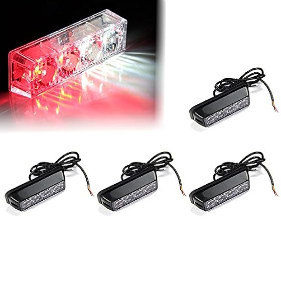 Xprite White & Red 4 LED 4 Watt Emergency Vehicle Waterproof Surface Mount Deck Dash Grille Strobe Light Warning Police Light Head with Clear Lens - 4 Pack