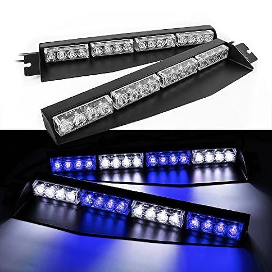 XUNZA 32W LED 15Modes Lightbar Visor Light Windshield Emergency Hazard Warning Strobe Beacon Split Mount Deck Dash Lamp (Blue/White/Blue/White)
